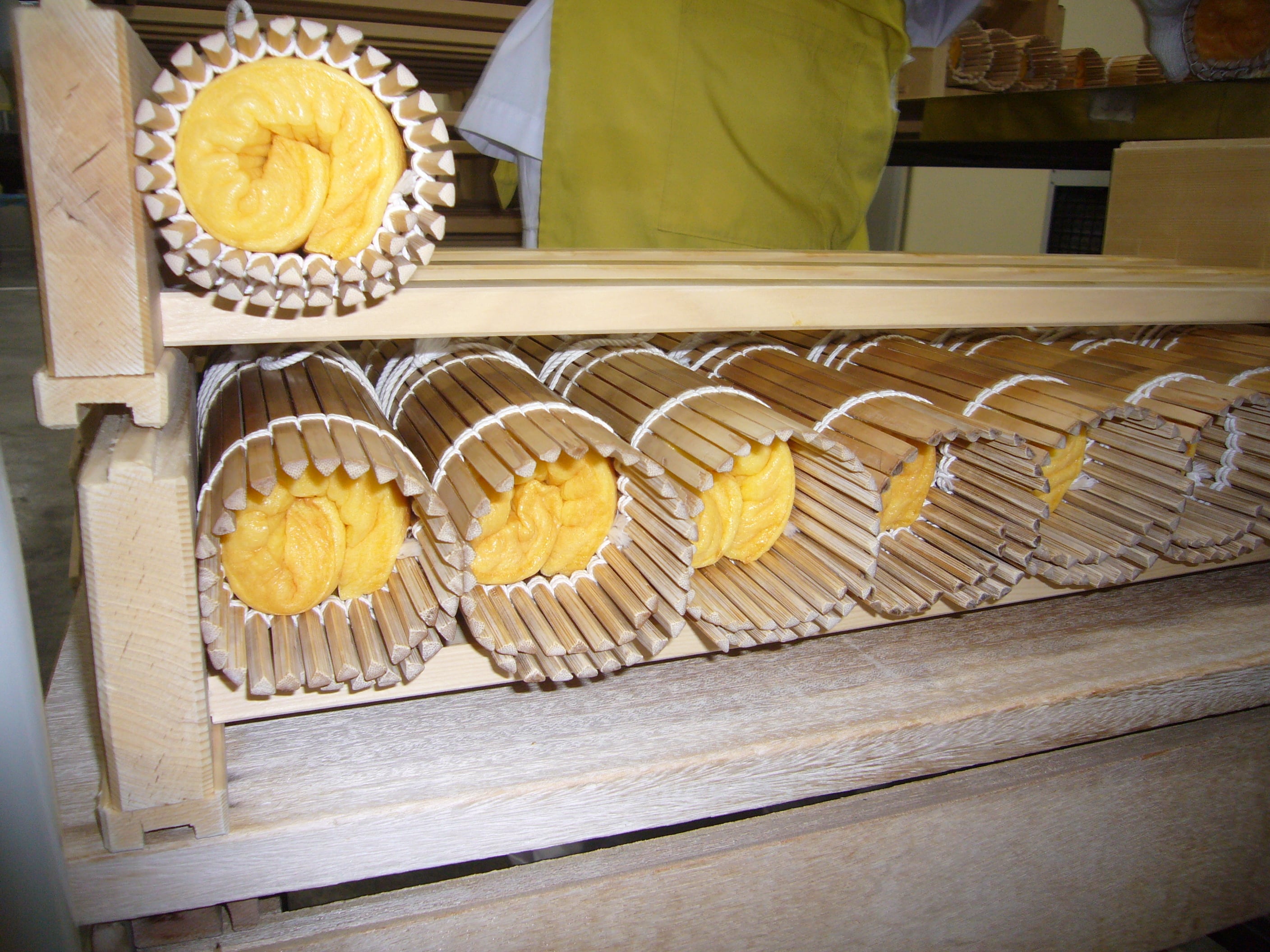 地鶏の王様と言われます『名古屋コーチン』を50%ほど使用し、 砂糖には北海道産甜菜糖を100%使用し、味醂には、原材料から国産にこだわった九重桜を使用しています。 その為、素材の旨みを引き立て、後味の引かないさっぱりとした甘さ、雑味の少ないキレ良い味になっています。 また、名古屋コーチンの濃厚で綺麗なオレンジ色が生地の色に反映されています。弊社の伊達巻を生かしつつ、 濃厚でコクのある名古屋コーチン、天然なミネラルが豊富な甜菜糖、神秘的とも評されるほどのまろやかなコクの 九重桜の特徴を生かした製品です。